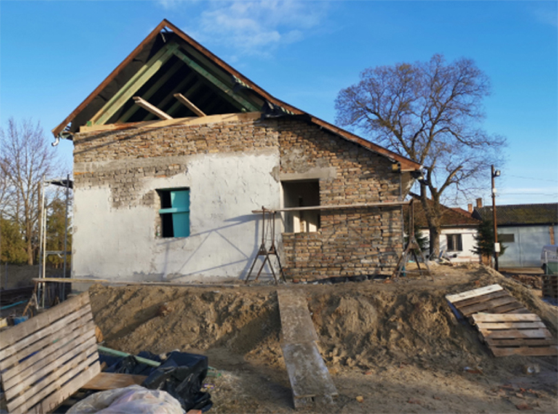 Falazata vályogtégla. Az eredeti tetőzet zsindely vagy kapacserép lehetett, a 20 század elejétől síkpala.