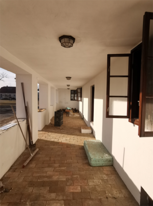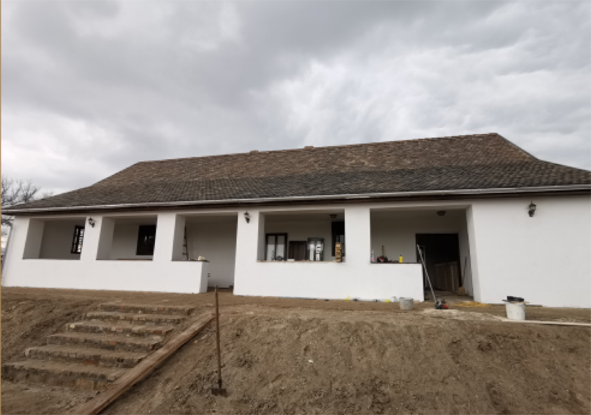 A főépület háromosztatú, a középső helyiségből mindkét oldalra nyíló kemenceszájakkal. Innen fűtötték aszobákat melegítő búbos kemencéket. A fedett tornác néhány évvel később épülhetett hozzá.